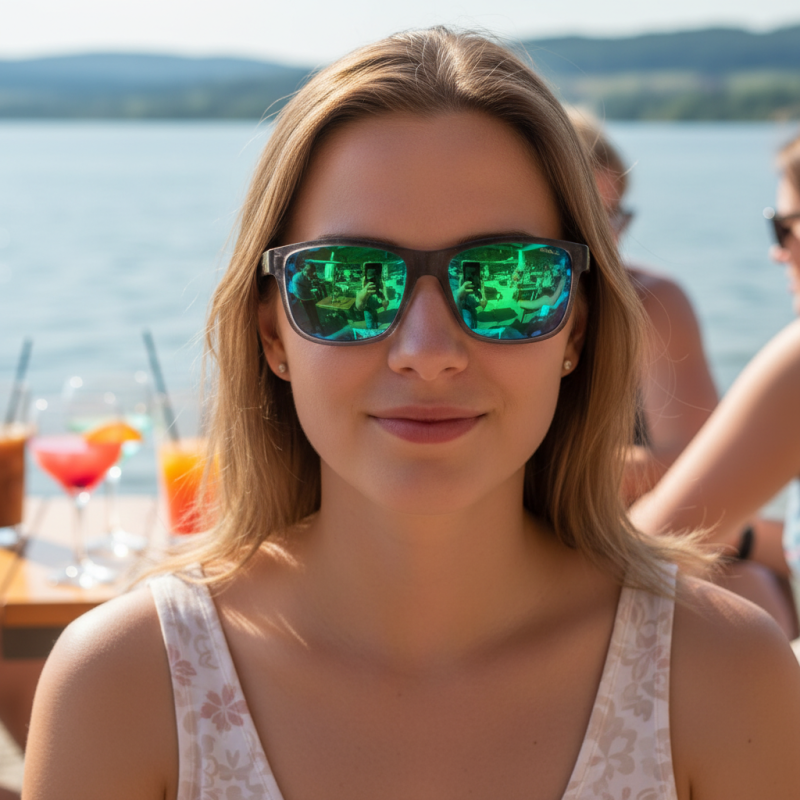 Sunčane naočale više nisu samo praktična zaštita očiju od sunca. Danas su neizostavan dio svakog stiliziranog outfita i prepoznatljiv modni dodatak koji može istaknuti osobnost i individualnost. Ova vrsta naočala ima polarizirane leće koje značajno smanjuju odsjaj koji se reflektira od glatkih površina kao što su haube automobila i vjetrobrana, mokre ceste, zaleđene površine ili vodene površine. Polarizirane naočale posebno cijene vozači ili sportski ribolovci. Zahvaljujući polarizacijskom filteru u lećama, boje su življe i kontrastnije, što smanjuje zamor očiju i povećava udobnost nošenja. Imajte na umu da polarizirane naočale mogu uzrokovati zatamnjenje ili izobličenje slike na nekim LCD i OLED zaslonima. Efekt zrcala na sunčanim naočalama zgodna je značajka koja može poboljšati vaš vid, a istovremeno vam dati moderan izgled. Ako tražite naočale za blistave sunčane dane ili želite zaštititi svoje oči od odsjaja, zrcalne naočale su odlična opcija za vas. Glavni materijal okvira naočala je izdržljiva i lagana plastika. Sunčane naočale imaju UV filter 400, što znači da blokiraju sva UV zračenja valne duljine do 400 nanometara. To uključuje i UVA i UVB zračenje. Ovaj UV filter bitan je dio dobrog para sunčanih naočala. Njegova prisutnost pruža sveobuhvatnu zaštitu očiju od štetnih UV zraka i pridonosi dugoročnom zdravlju očiju. Naočale propuštaju 8 - 18% svjetlosnih zraka, a leće su tamne boje. Intenzitet tamnjenja leća prikladan je kao zaštita od jakog sunca. Naočale dolaze u originalnoj kutijici ili torbi proizvođača.Sunčane naočale koje se mogu koristiti za rekreativne sportove i aktivnosti na otvorenom.